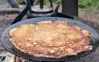 The noun for a Finnish pancake varies. Lettu, lätty, plätty, räiskäle, ohukainen. According to folklore we tend to give a range of names for the most beloved matters. And pancakes certainly are one of them. Our pancakes are cooked the traditional way on an open fire using only the few best ingredients. We invite you to share the fireside with us and enjoy the modest yet glorious taste of Finnish pancakes crowned with sweet jam. If you want you get to cook your own pancake under the gentle guidance of our wilderness guide. Traditional kettle coffee/tea with necessary condiments is naturally also served. And btw, our coffee is the best we know for being made with fire, because we developed it ourselves!